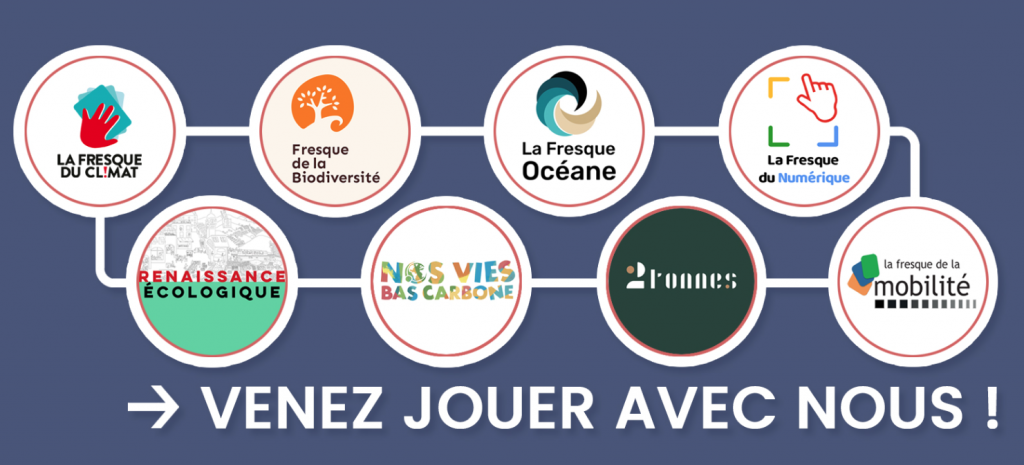 Ce collectif regroupe les représentant.es au niveau local des associations de sensibilisation aux enjeux environnementaux : Fresque du Climat, Fresque de la Biodiversité, Fresque Océane, Fresque du Numérique et plein d’autres, dont les ateliers ont déjà touché plus de 2 millions de personnes en France et à l’étranger !